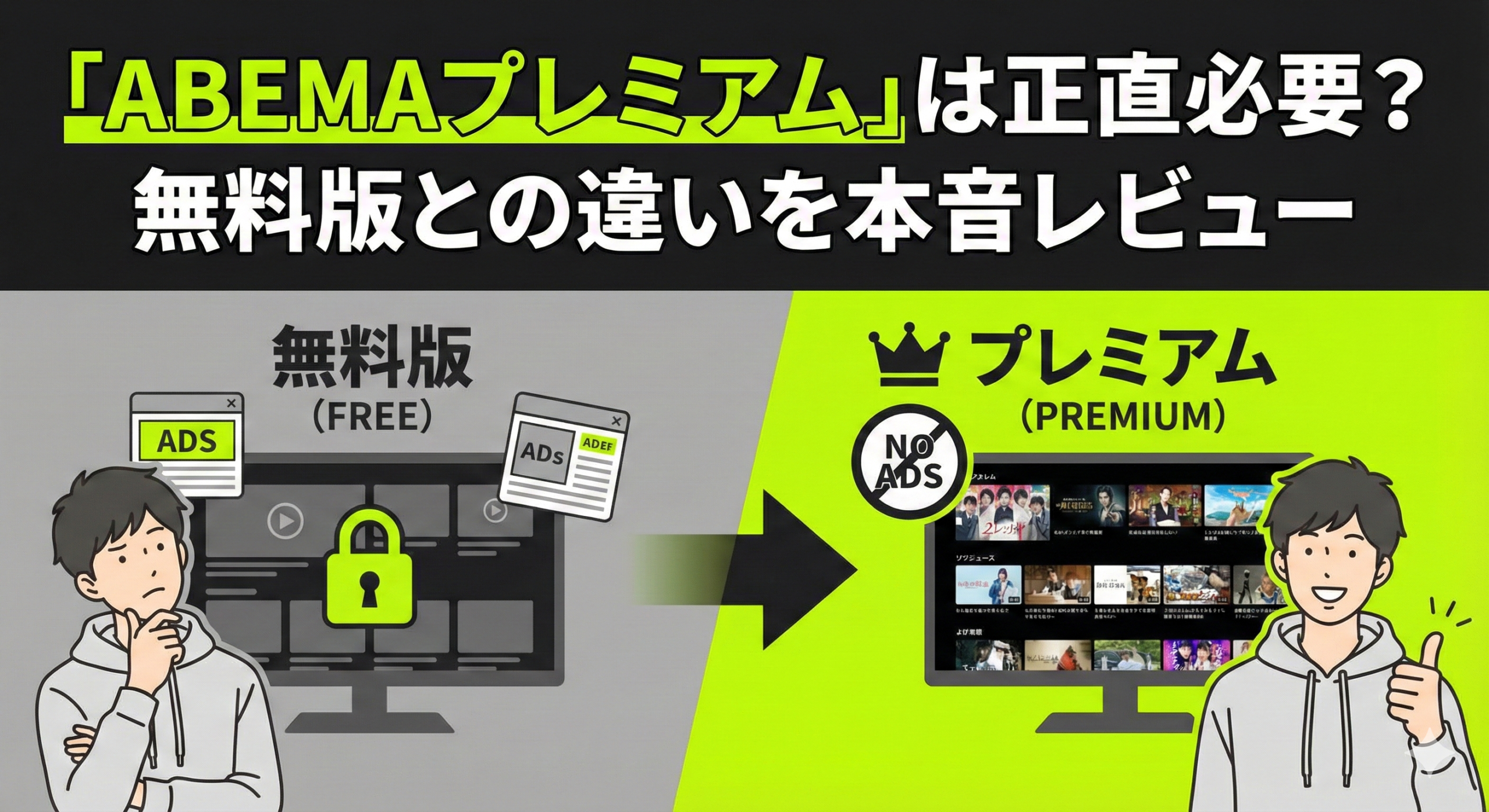 今回は、実際に無料会員とプレミアム会員の両方を経験した私が、**「ABEMAプレミアムは本当に必要なのか?」**というテーマで、無料版との違いやメリット・デメリットを徹底解説します。