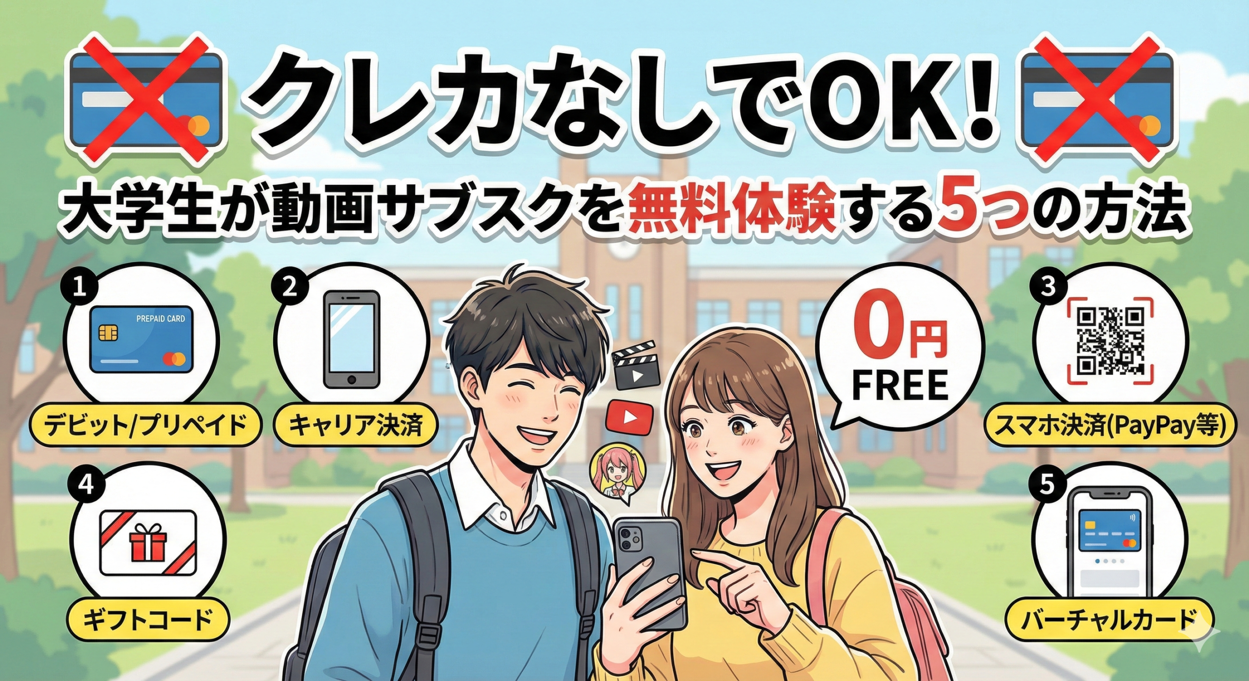 今回は、クレカ難民の大学生を救うべく、**「クレジットカードなしでVODに登録する具体的な5つの方法」**を徹底解説します。